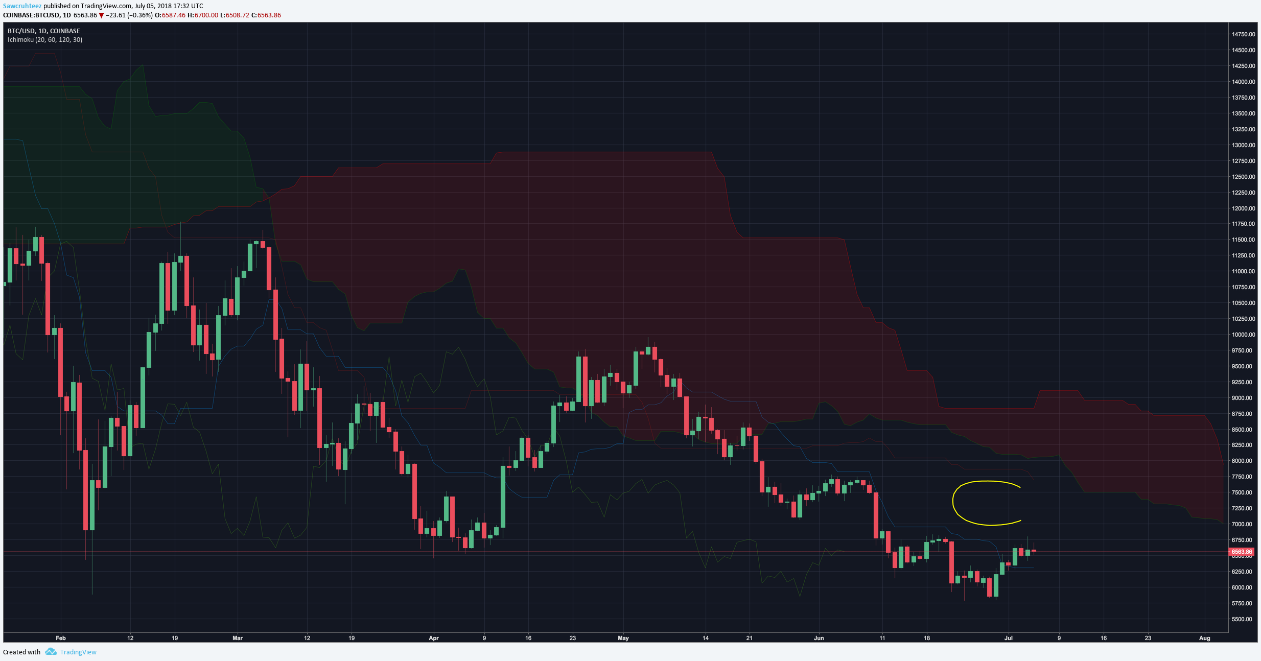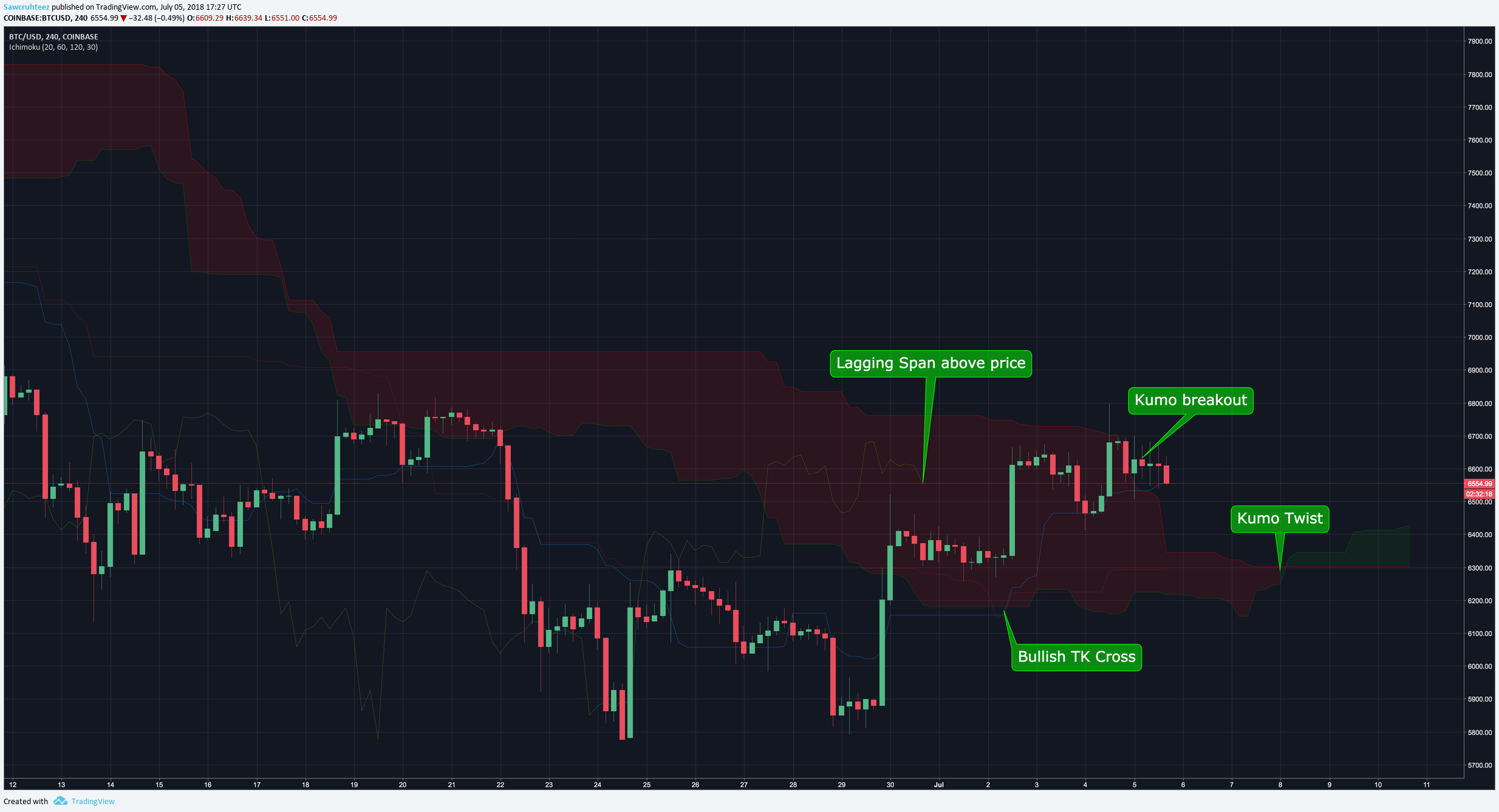 The Ichimoku Cloud on the 4 hour chart just had a kumo breakout, combined with a bullish TK cross and a bullish kumo twist.