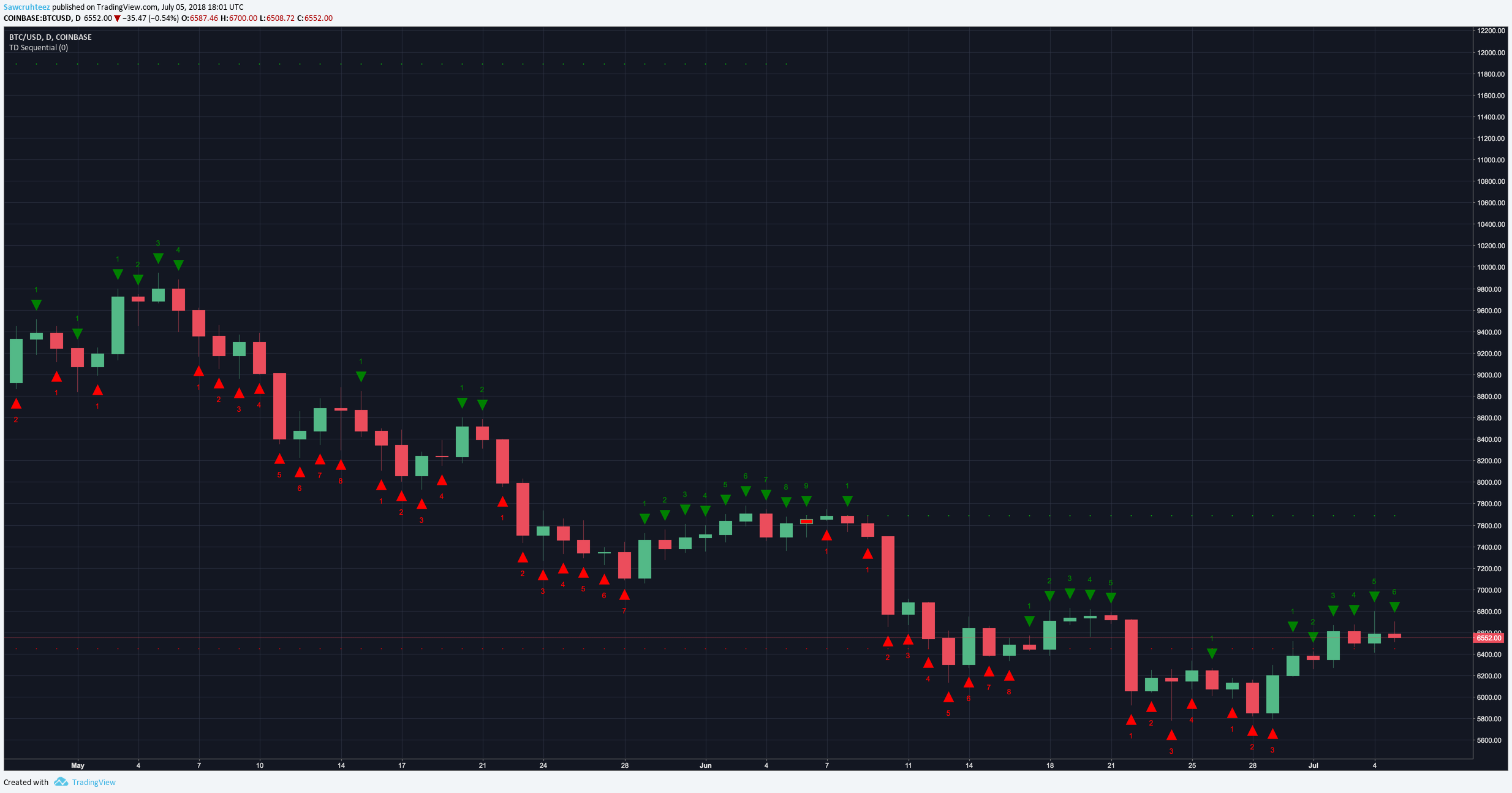 We are in a bear trend and we are under a ton of resistance. Therefore I am going to stay away from a long. The second reason which led me to this decision is the TD Sequential which is currently on a green 6 out of 9. That indicates that the entry was missed and this rally could coming to an end.