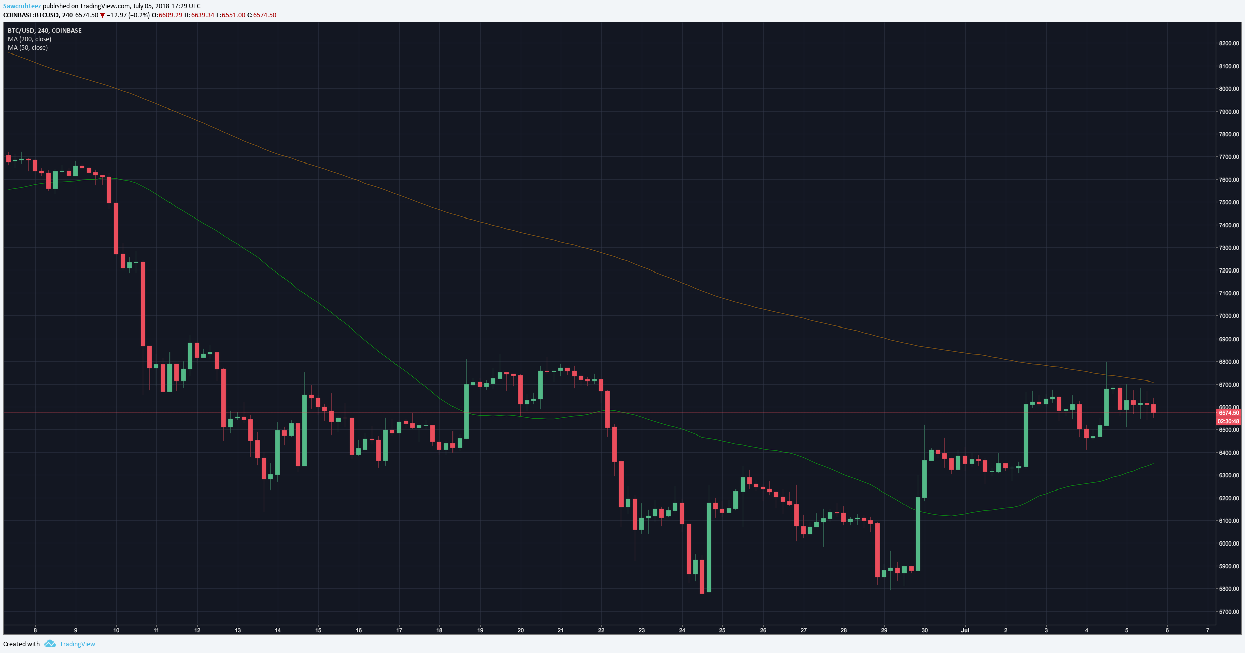 Yesterday we narrowed in on major areas of resistance and outlined why I believe $7,770 - $8,150 will be a great area to build a short. Since then we have shown weakness as the price failed to rally through $6,800. Today we will be checking to see if it still looks like the rally can get to $7,700+ as well as going over the reasons why I am staying out of the market while waiting for further development.