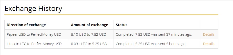 Support exchange between these currencies: Bitcoin:BTC:, BitcoinCash, Dash:DASH:, Litecoin:LTC:, Dogecoin:DOGE:, Perfectmoney, WEX, Paymer, Payeer, EXMO, Zcash.