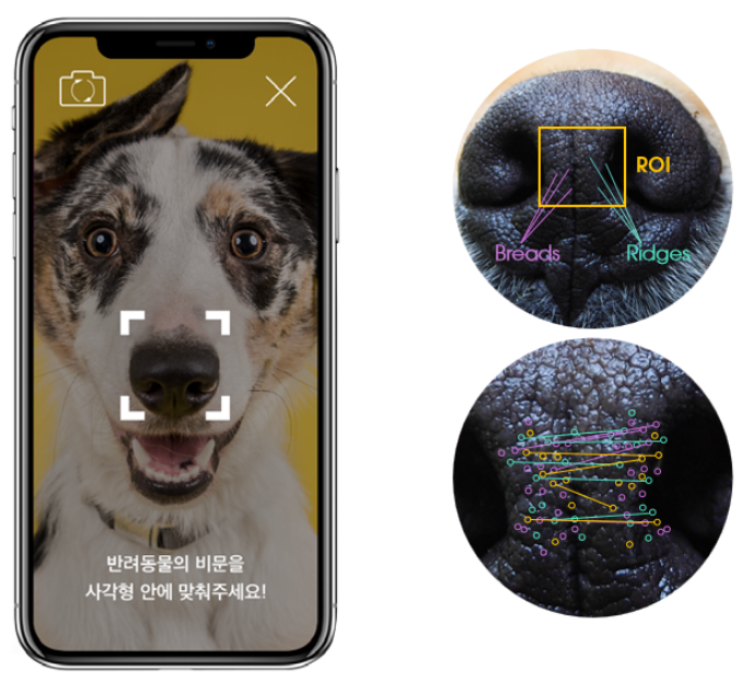 비문 개체 인식 기술은 인간의 지문과 같이 동물마다 다른 코주름 무늬를 이용한 비문 개체인식기술입니다.