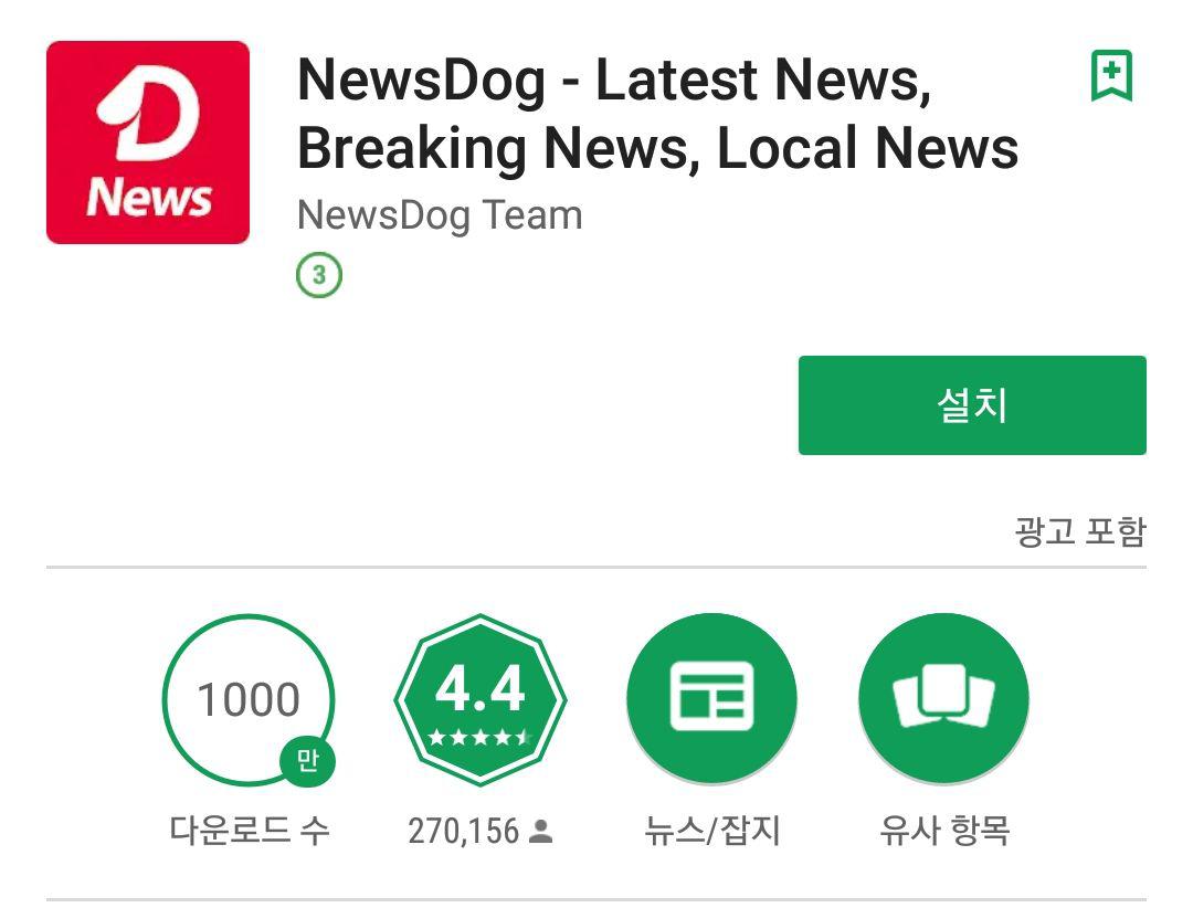 뉴스독은 안드로이드 기준 1,000만 다운로드 횟수를 기록할 만큼 확실히 공신력 있는 미디어는 맞는것 같습니다.
