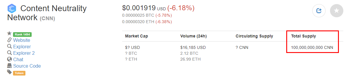 CNN 은 현재 시총 1494 위의 코인으로써 인지도는 매우 낮다고 볼 수 있습니다.