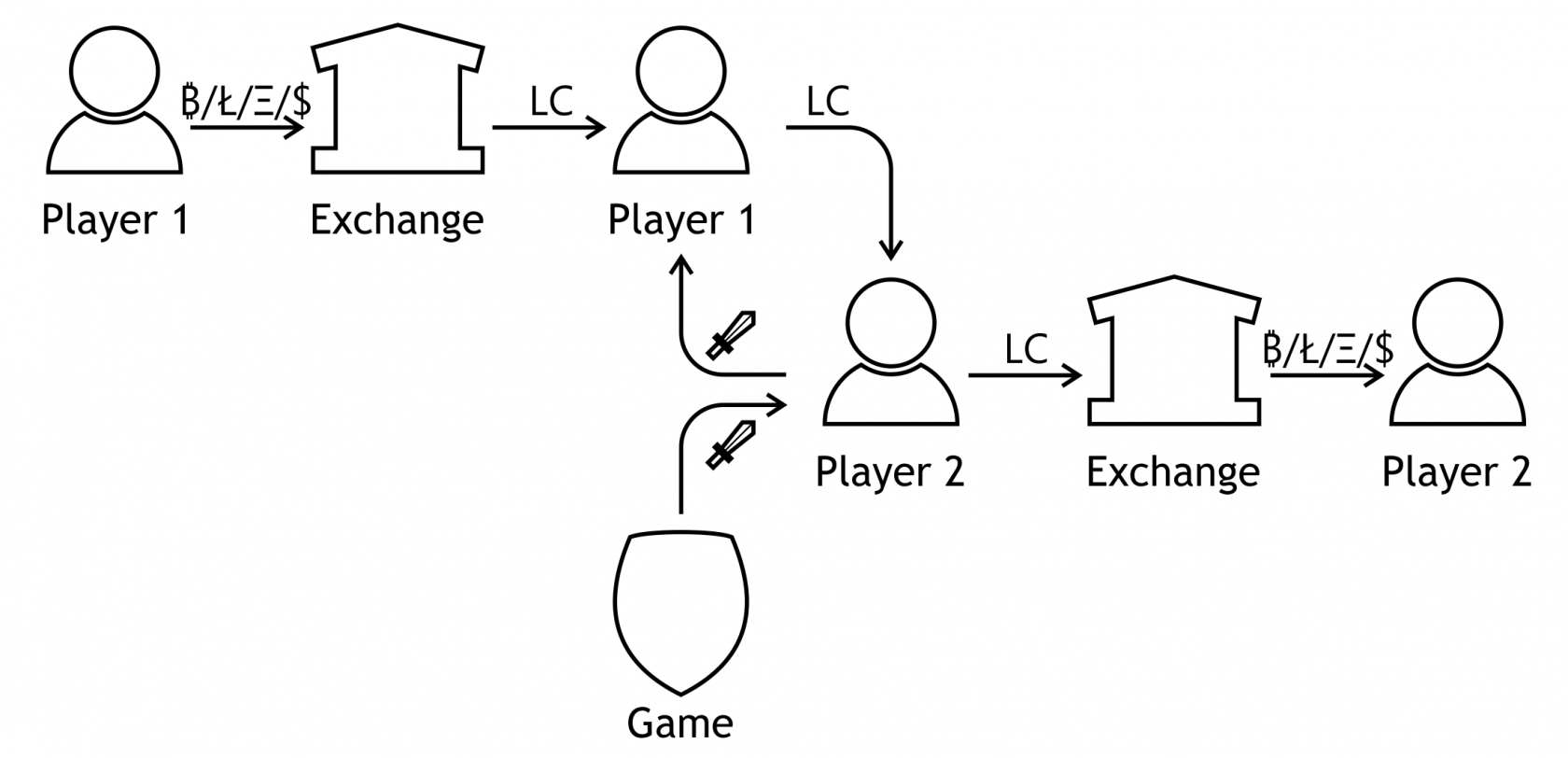 Players can trade with each other in the open gaming market, using LC as a currency. For each operation a commission of 20% is charged, which is spent as follows: - 50% of the commission is burned - the second 50% is accumulated on a special account of the Game Funds.