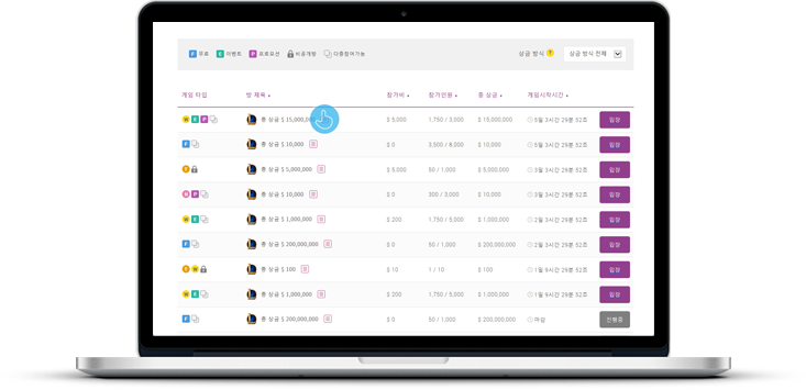 You can create a new contest or enter a contest that has been created. There are several modes for prize money (Winner takes all, # Top winner, Divided into Top # sinner). Each contest has a different entrance fee and a total prize money.