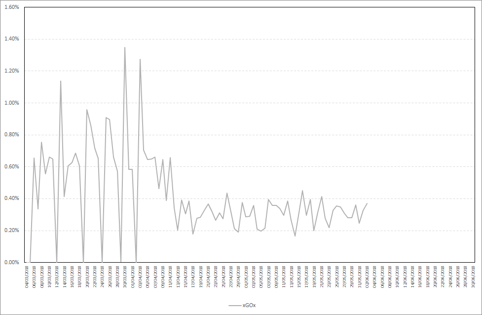 As you can see, XGOX also starts staking almost immediately after your stake is included in the wallet during daily wallet maintenance. Maximum daily stake profit in the period from 27.05.2018-02.06.2018 was 0,37%, while the average daily stake profit was 0,31%. Detailed results are presented on the chart below.