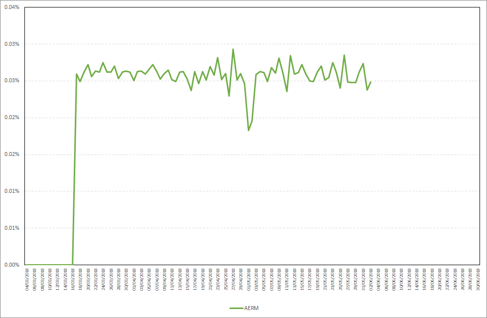 As you can see, AERM starts staking almost immediately after your stake is included in the wallet. Maximum daily stake profit in the period from 27.05.2018-02.06.2018 was close to 0,03%, while the average daily stake profit was 0,03%. Detailed results are presented on the chart below.