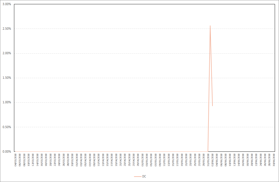 As you can see, DC starts staking almost immediately after your stake is included in the wallet. Maximum daily stake profit in the period from 27.05.2018-02.06.2018 was 2,56%, while the average daily stake profit was 1,75%. Detailed results are presented on the chart below.