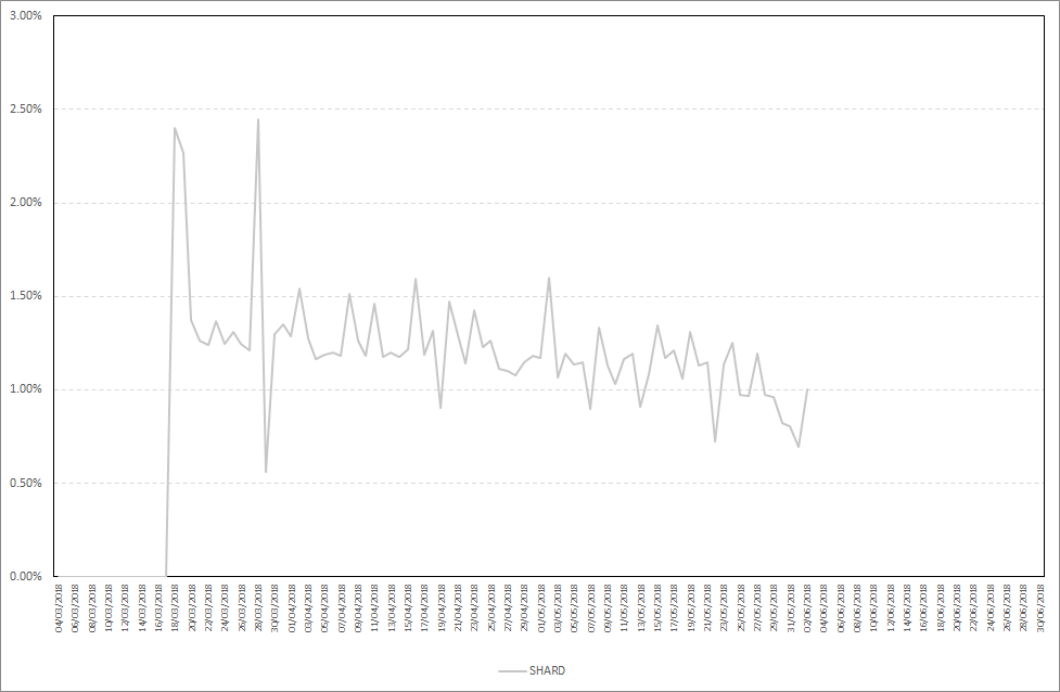 As you can see, SHARD also starts staking almost immediately after your stake is included in the wallet during daily wallet maintenance. Maximum daily stake profit in the period from 27.05.2018-02.06.2018 was 1,19%, while the average daily stake profit was 0,92%. Detailed results are presented on the chart below.