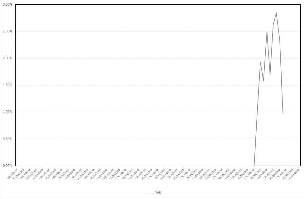 DV7 was finally swapped for DV8! As you can see, DV8 starts staking the next day after you deposit it. Maximum daily stake profit in the period from 20.05.2018-26.05.2018 was 2,85% , while the average daily stake profit was 2,08%. Detailed results are presented on the chart below.