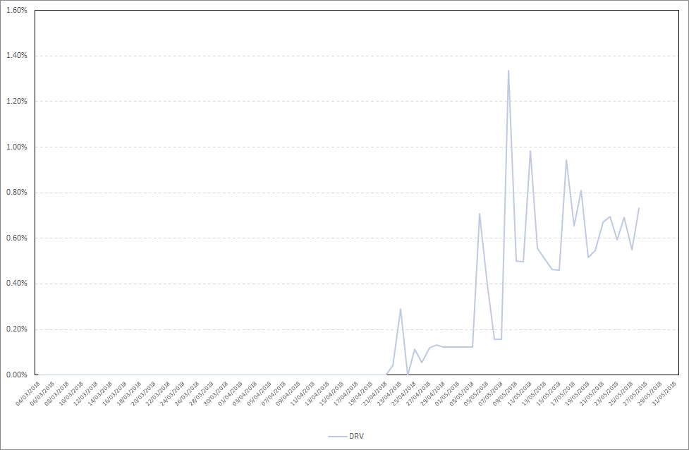 As you can see, DRV starts staking the next day after you deposit it. Maximum daily stake profit in the period from 20.05.2018-26.05.2018 was 0,73% , while the average daily stake profit was 0,64%. Detailed results are presented on the chart below. Hold on to your pants with DRV since it is nowhere close to the maximum ROI phase yet (10.000% is yet to come)!