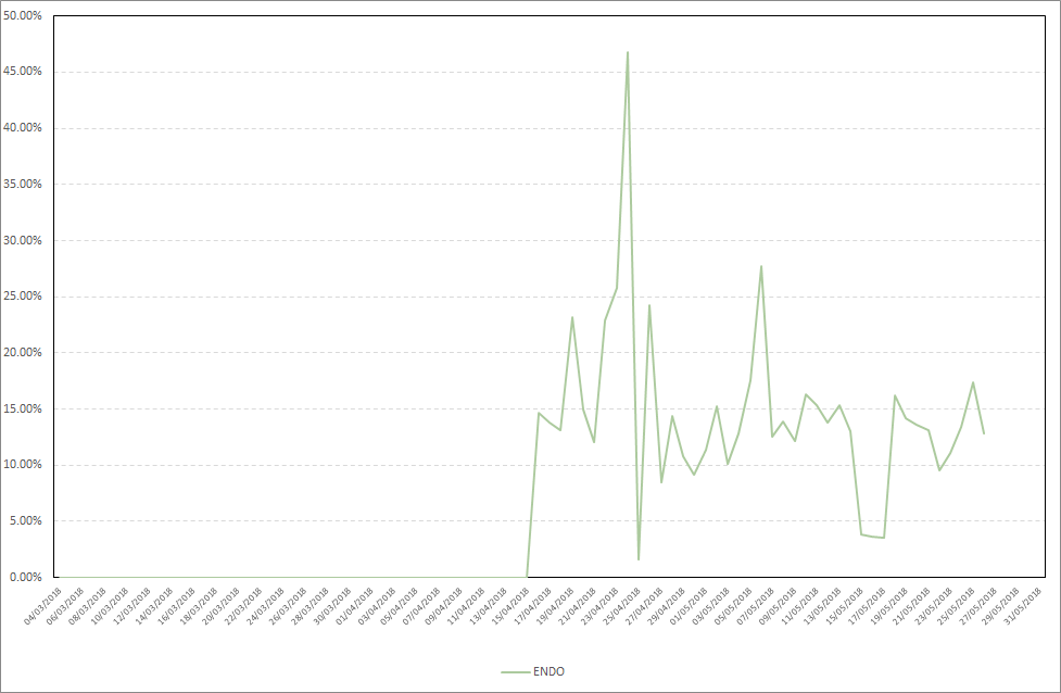 As you can see, ENDO starts staking almost immediately after your stake is included in the wallet. Maximum daily stake profit in the period from 20.05.2018-26.05.2018 was 17,40%, while the average daily stake profit was 13,00%. Detailed results are presented on the chart below.