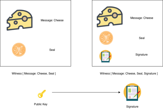 In the above equation, we had mentioned clearly the closure of the seal, message, signature produces the witness. Which actually is much more meaningful than what we discussed earlier. To make it much stronger we can use any cryptographic identity scheme, such as a Bitcoin-style predicate script, zero-knowledge proof, etc.