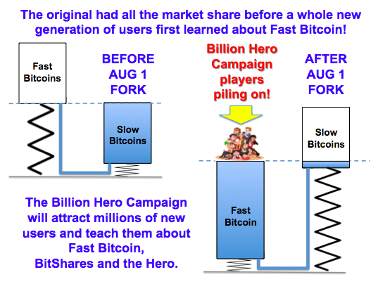 Doc Brown: Anyhow, the object of the game is for everybody to do things to help grow the value of those donated BTS and BTCX to where the value of the coins in the billion-hero-prize account reach a billion dollars each. While people play the game, they'll learn to use both slow and fast bitcoins and a whole lot more. Given the choice of staying on the BitShares superhighway and using Fast Bitcoins to trade with every other kind of financial product, or isolating themselves on a compromised platform with nothing but Slow Bitcoins to use, what do you think most of them will choose?