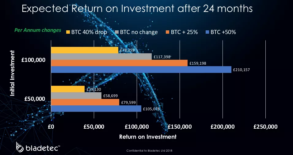 Bladetec founder John Kingdon says investors "are not likely to lose money". According to his calculations, the sale of mining equipment would generate profits; it is unclear whether factors such as declining equipment prices and increased mining costs have been taken into account that require more electricity and computing power each year.