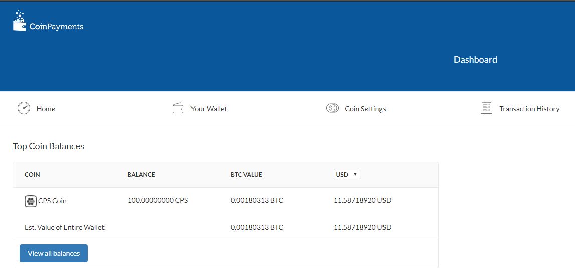 Get CPS Coin 100 for register Coinpayments hot wallet