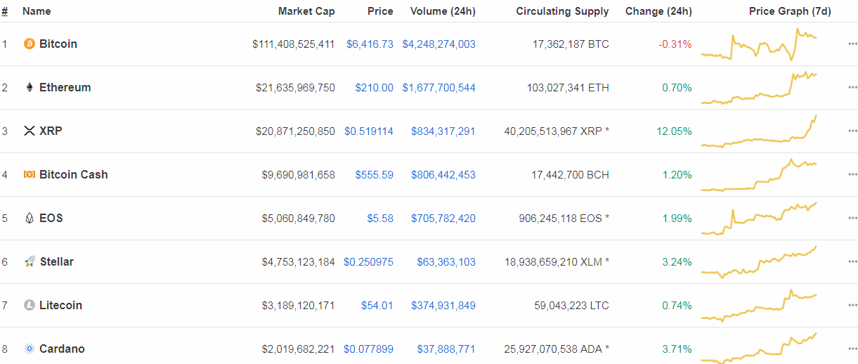 cryptocurrency are taking a big move towards the all time high.the XRP is 12% raised up in 24 hours this might be a good news for the bitcoin and other cryptocurrency