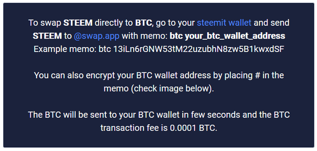 The website also presents quick guide how to perform the actual swap - which means making a transfer to @swap-app and using a memo if needed. The guide changes dynamically depending on selected currencies. Also a screenshot is added to make the whole process easier to understand.
