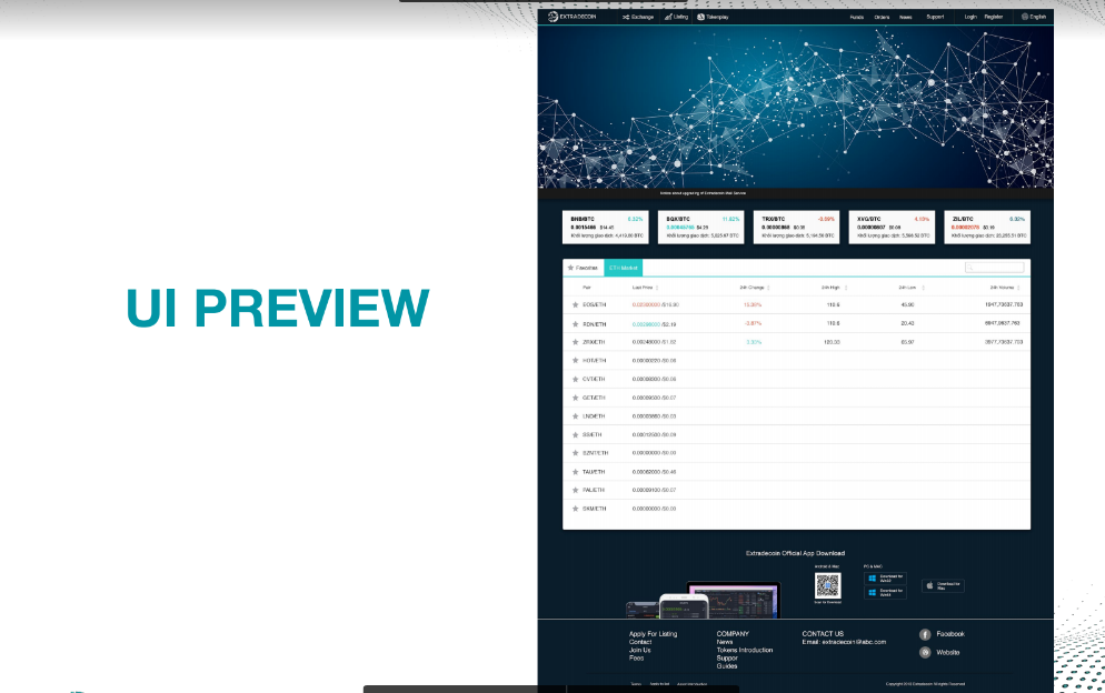 Extradecoin is a cryptocurrency trading platform. Investors can trade crypto-crypto on the exchange. Extradecoin connects sellers and buyers. Extradecoin has been established with the desire to provide a high quality, reliable and safe financial platform for traders. Project will bring the latest technology to their platforms with a much enhanced UI experience, and at the same time build ecosystems to maximize the benefits for the community.