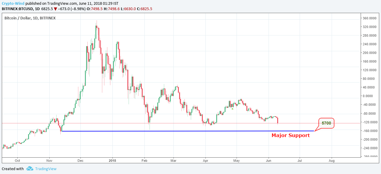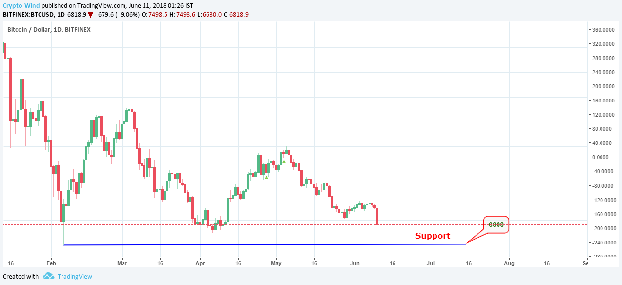 Unfortunately, BTC has fallen below to our 7000 Local support level. Still some ups and downs are happening in the market. It's very hard to predict the current market price movement as the unconfirmed rumors and the secondary indicators like RSI overselling indication influencing the market too much. If bulls accept this condition we may see the price action going high. Still now the market is looking bearish.