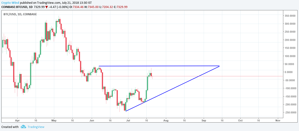 Another possibility is that we may have to wait for some couple of days to form an ascending triangle chart pattern for a bullish movement. In the meantime, we will experience little ups and down in the price movement as you can see it from the image. After that, I firmly believe an upward trend will be experienced.