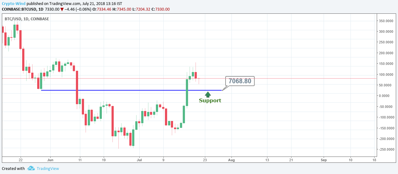 I have found a support level for it. The first support is at 7000$ that I have early mentioned. I think this support level is hard to break for some couple of days.