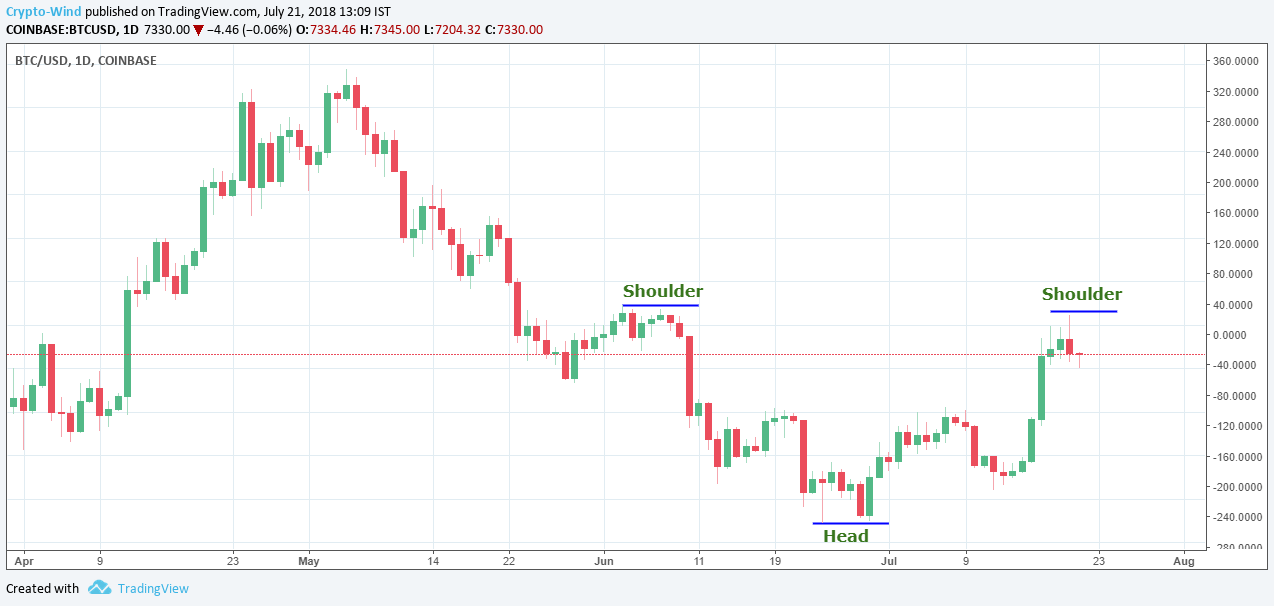 Last day I had predicted that after forming an inverse head and a possible shoulder chart pattern BTC price might experience a downward trend.