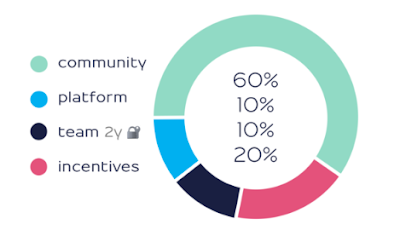 The second largest share, 20% of all tokens, serves various incentive programs such as rewards for beta testers or discounts for early adopters.