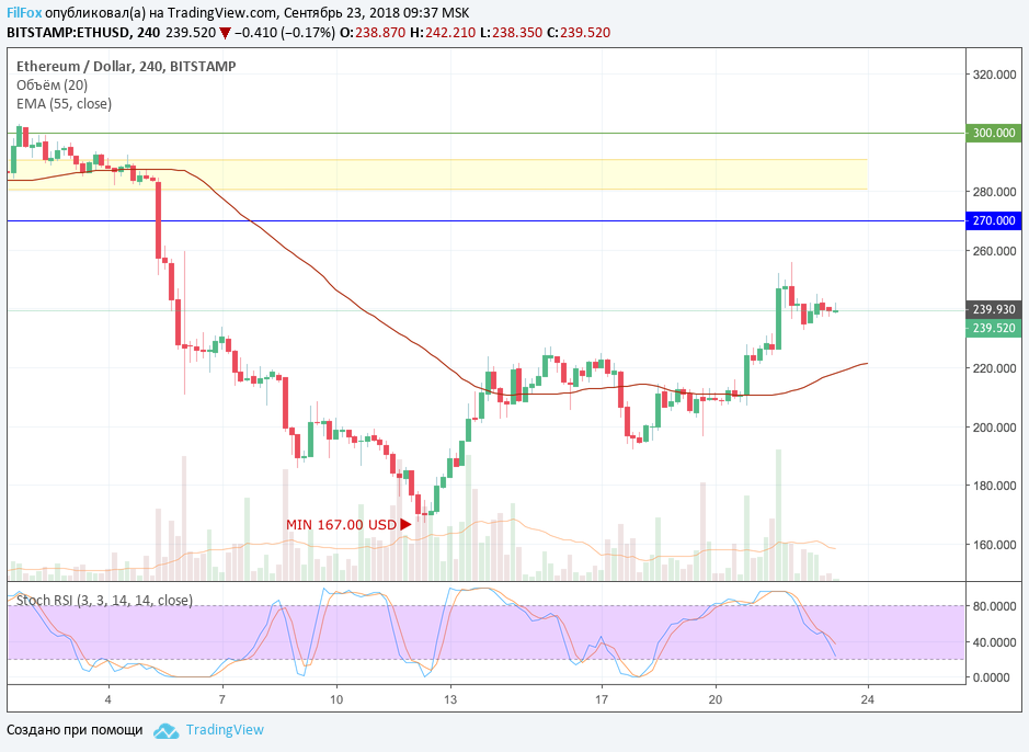 Ethereum like Bitcoin had started the week with a dip, but unlike the BTC, there was no high volatility on the ETH / USD chart. Ether growth began synchronously with the rest of the Friday's altcoin market, but was less dynamic than Ripple's.