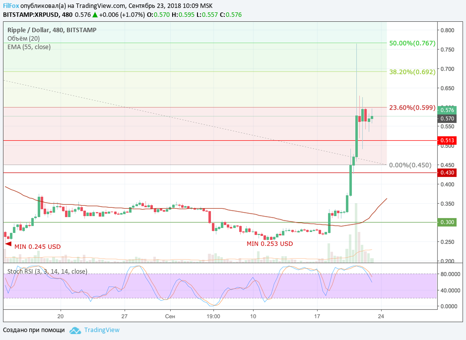 Such active growth is associated with the promotion of xRapid, the new product for institutional investors. And even though, at the end of the week, the price fell to $ 0.600, investor sentiment in this asset is rather optimistic.