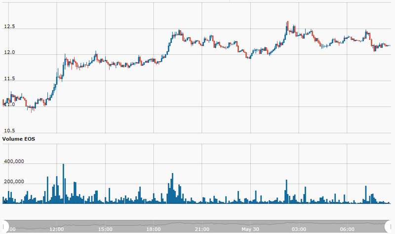 The EOS price is sitting at $12.18 representing a gain of 9.14% in the last 24 hours. More than $170 Mln worth of EOS were exchanged in the EOS/USD market representing a 17.6% share of global daily volume. The EOS/KRW pair represents a 30.5% share.
