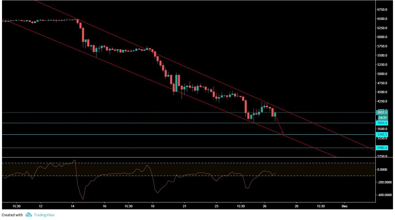 forecasttraderman (25)in #bitcoin • 7 years ago (edited)Bitcoin is on a descending channel. After registering a price of 3600, the next bitcoin price range is 2900. This information is not a recommendation to buy or sell. It is to be used for educational purposes only. #price