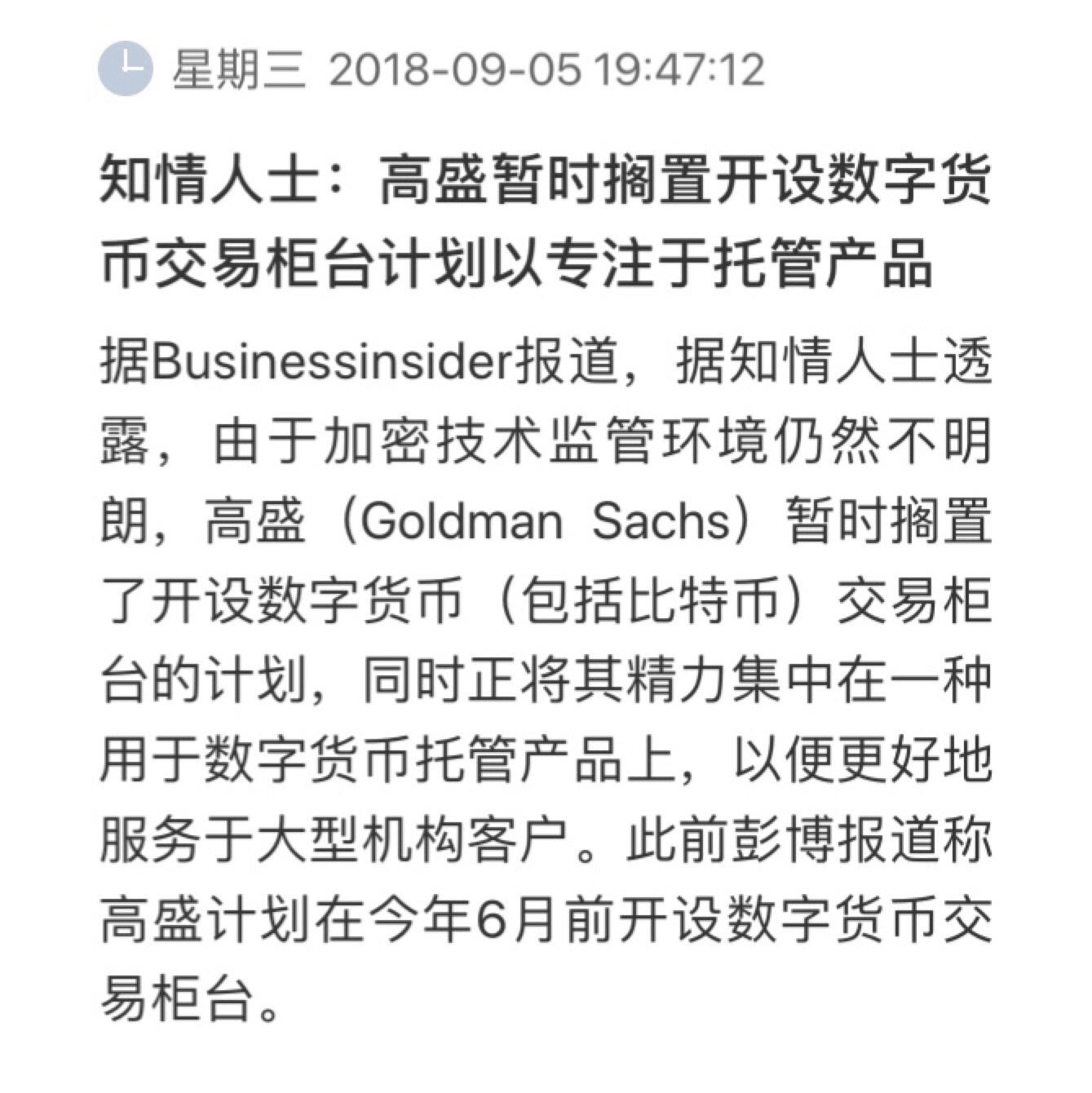 1、据彭博社报道,是在有报道称高盛集团正在撤回其近期将建立的加密货币交易柜台计划后,比特币经历了急剧下跌。然而在今天,高盛发声明称这个重要推手是“假新闻!且抛开假新闻不说,高盛集团真的有这么大影响力让比特币暴跌?恐怕未必,高盛集团此前有爆料称将开设加密货币服务平台的计划,这条消息貌似并没有多少人关注,那么反过来就有这么大的影响吗?只能说呵呵。 叔又查阅了一点资料,爆料的居然是:某知情人士。不知道媒体上对知情人士这种消息来源是如何采信的。但是币圈小伙伴确实表示已哭晕在厕所。那么这个假消息又是什么人,通过什么方式散播出去的呢,非常值得我们探究。