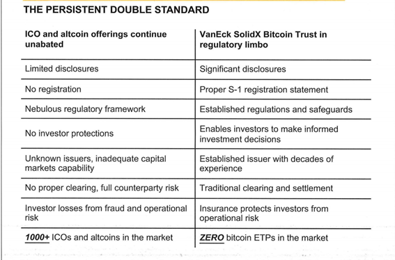 The Winklevoss review was voted on by Chairman Clayton, two Democrats and a Republican, the decision was to deny. Kata stein could not participate in that decision, his position had expired.