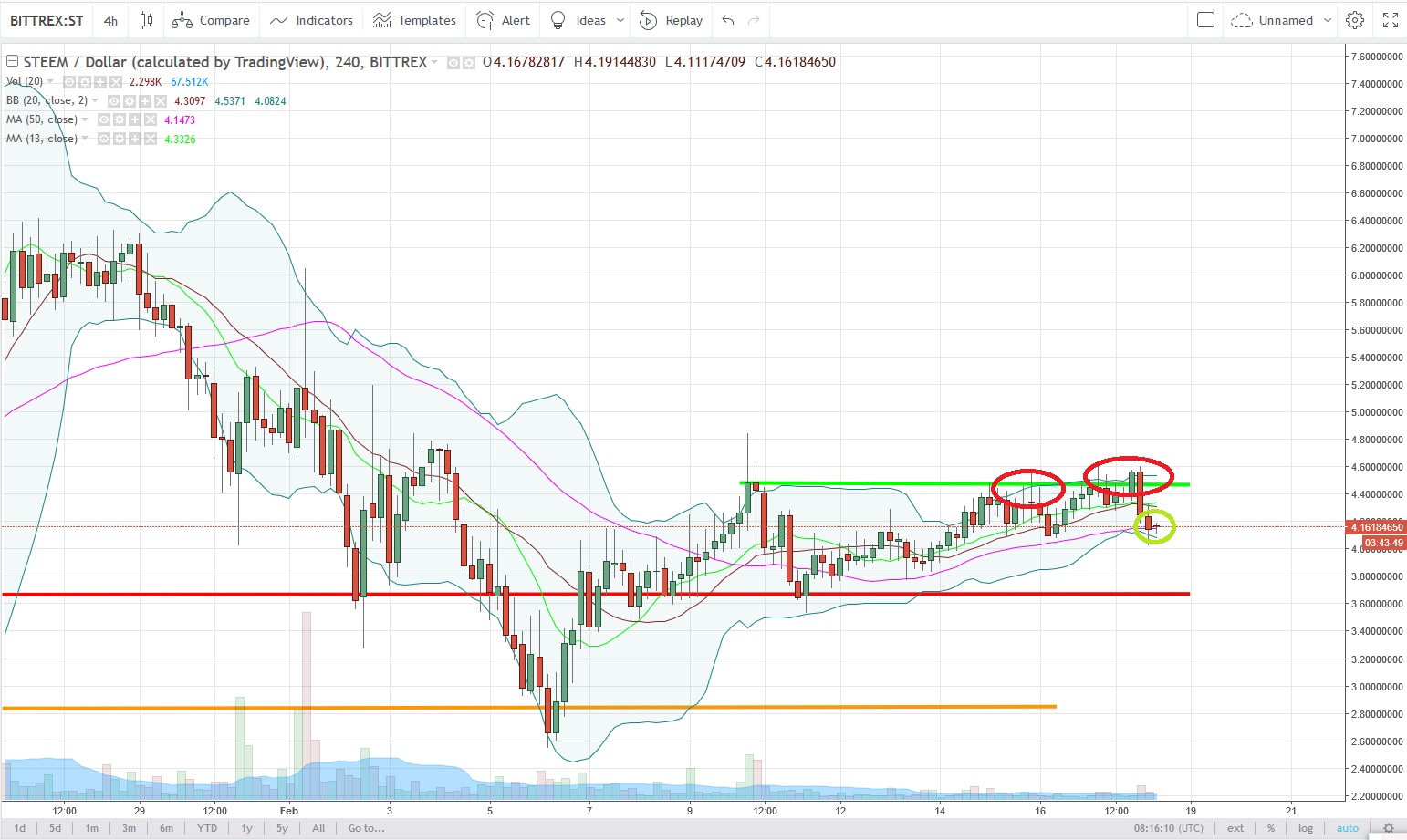 Every coin is going to continue to dump until bitcoin cools off Steem included so all TA bets are off until then.