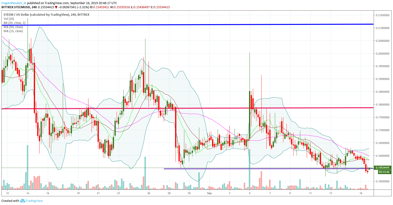 What a nice pattern that we have on the STEEM. We have a W pattern or a double low if you prefer that we can clearly see on the chart. For the one who still don't know that pattern, it is a bullish pattern ! It looks like that the Alt Coins are taking back some percenst of the global market compared to BTC. We are still far from the Alt Season that we experienced back but it could be the start... why not ? Regarding the STEEM, let's see if we can go test the resistance line in red around 0.178$.
