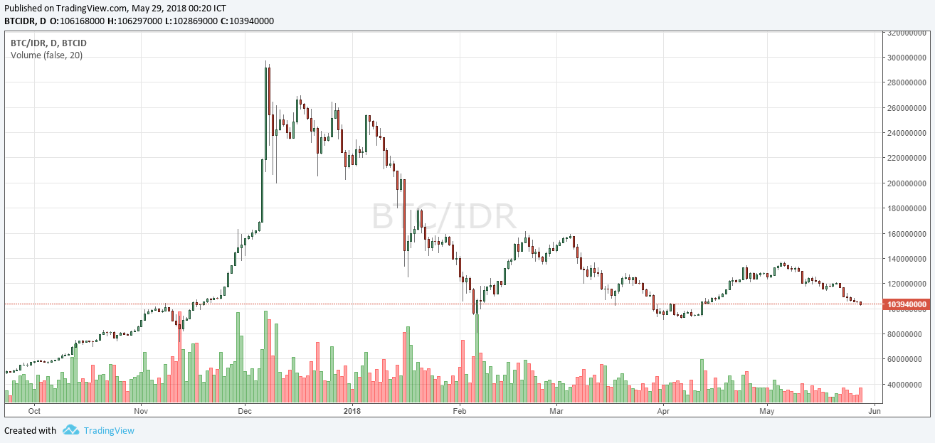 So let's continue. I will use price actions and market from indodax.com , Indonesia's biggest crypto exchange. And note that the number may look funny (100 millions or more). Don't worry, it's just that I use Indonesian Rupiah (IDR) as the unit (1 USD = approximately 14000 IDR, data per 29th May 2018).