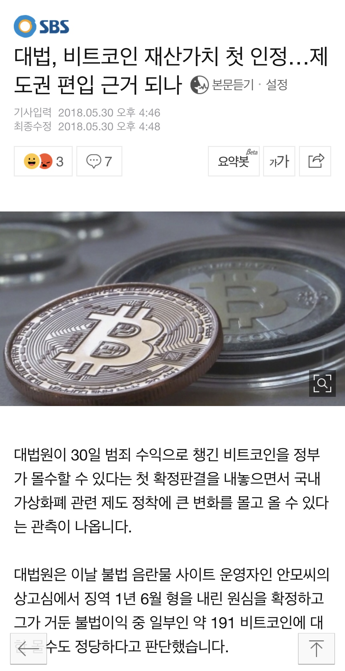 대법, 비트코인 재산가치 첫 인정wotjsozm (57)in #bitcoin • 8 years ago (edited) 쉬는시간에 잠깐 뉴스보는데 이런 기사가.. 여러분 보셨을까해서 올려봅니다 #kr #kr-newbie #jjangjjangman #news