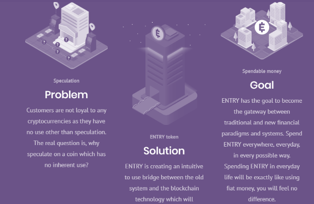The Entry is a decentralize ecosystem which provides the solution of everyday life. It is based on smart contract technology and tries to revolutionize the whole financial ecosystem. It also removes the numerous intermediaries and tries to provide a unique solution for the participants. You can use this ecosystem to complete the payments of platform services. They follow a great working structure to gain success in business.The Entry ecosystem: The Entry business model has 6 main elements. Now I am describing them in below: