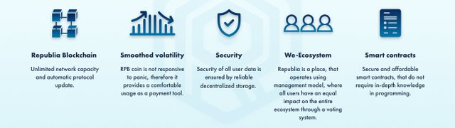 Ekosistem Republia didasarkan pada prinsip-prinsip utama pengoperasian teknologi blockchain.