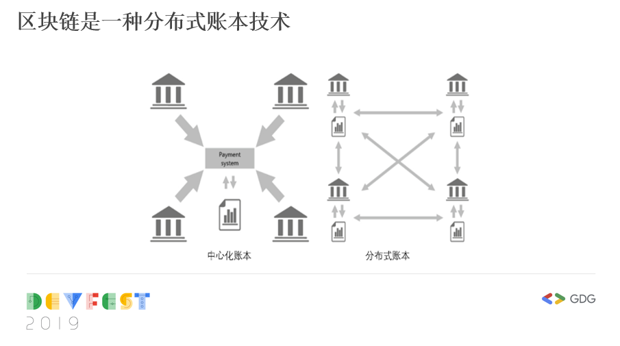 自从国家给区块链正名之后,现在大家都在大谈特谈区块链,谈区块链怎样改变世界,但其实很多人对区块链是有误解的,这里由于时间有限我只谈区块链一个最硬核的概念。大家肯定都听过关于区块链的各种解释,我认为那都是盲人摸象。区块链实际上是一种分布式账本技术,英文是Distributed Ledger Technology。