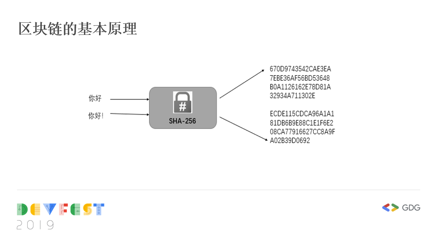 从这上面这张图大家可以看出,如果对“你好”进行哈希运算,就会得到一个256位的定长字符串,如果我们给“你好”加一个!,哈希运算的结果就完全不一样了。