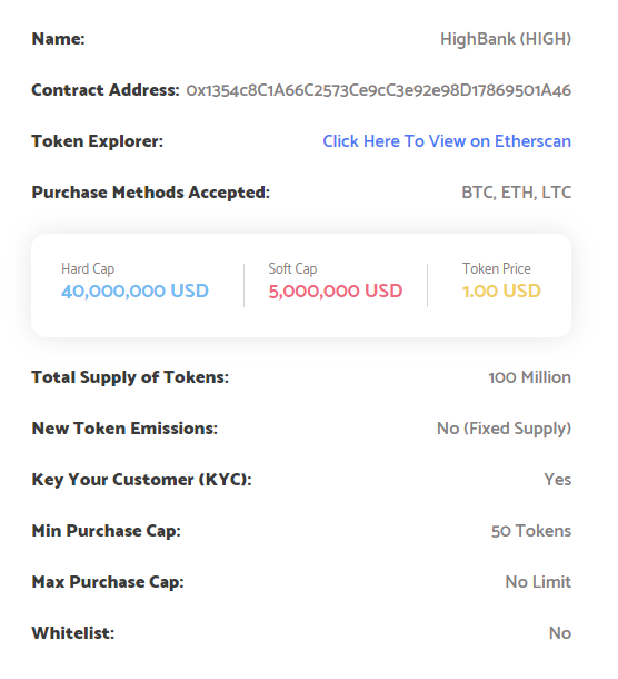 Platform listing kami adalah solusi transparan yang dicari orang. Dengan kombinasi fungsi gradien acak dan mesin IBM Watson 500, platform HighBank akan dapat mengidentifikasi ICO terbaik dengan potensi untuk menghasilkan banyak uang dari pasar.