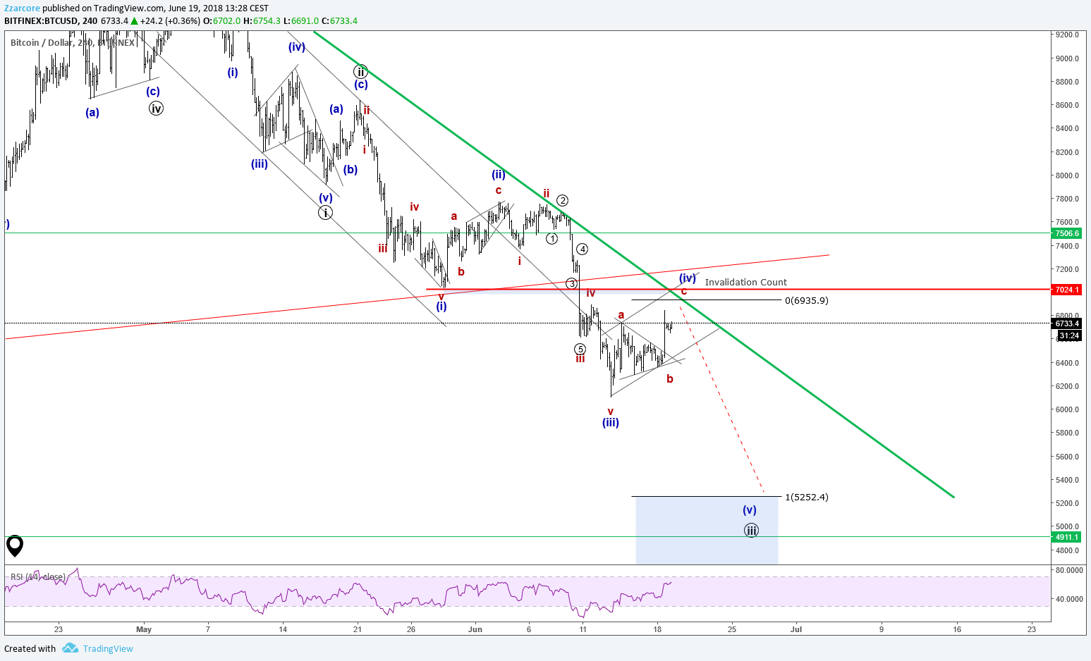 BITCOIN - Price Analysis - June 19th 2018zzarcore (34)in #bitcoin • 8 years ago Yesterday I posted: Since then, bitcoin broke up out of the triangle. I expect one more upwave in this correction, but then we should be headed down. #price #prediction #trading #technical