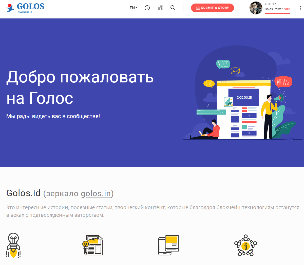 Today I want to tell you about the very first coin I bought. It is a token of GLS media block project GOLOS. GOLOS is translated into English as VOICE=). Like new socialnetwork from Block.one