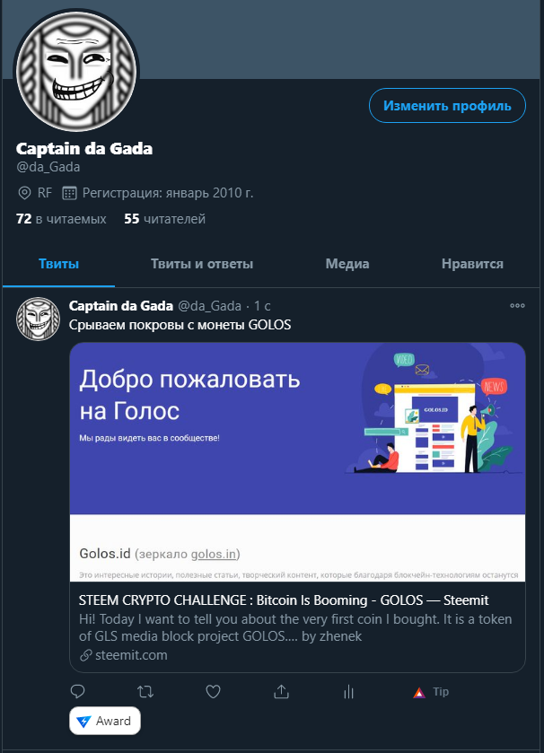 I started my acquaintance with the world of blockades in 2017 with the GOLOS. This is a Russian-speaking fork of Steemit. The first investment in the crypto was buying tokens of GOLOS blockchain. Then they cost 4400 Satoshi and traded on the Bittrex exchange. Now it is only 5=) good that STEEM did not ruined so epic=) But I had never hold such much tokens...