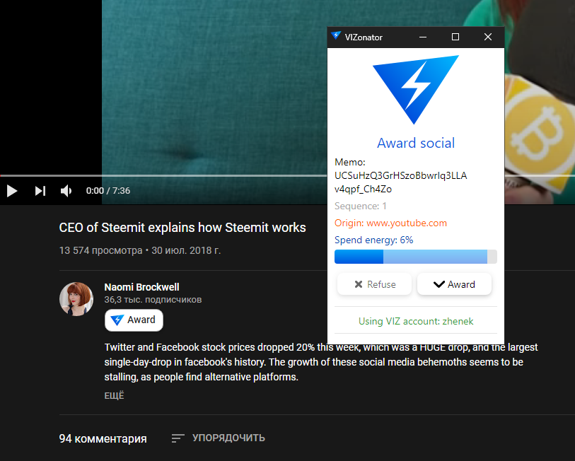 Another important change in the Viz blockchain, compared to STEEMIT and GOLOS, is that in order to vote it is not necessary for a person to write a comment or post. The Viz blockchain allows to leave a reward absolutely for any activity. Not only the content on the blog platform application, but also for a video on YOUTUBE or a post on twitter. For any Facebook comment or messenger message. All you need is a special gateway that will record the information about the award in the VIS blockchain.