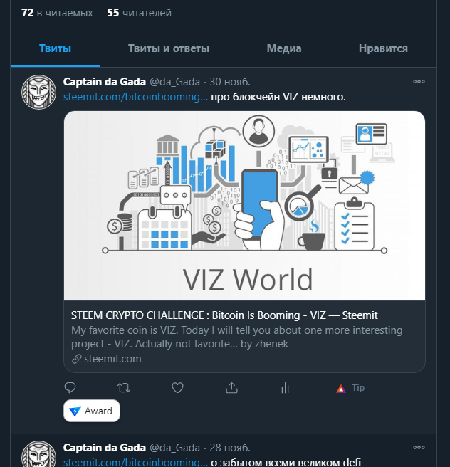 VIZ is a very interesting project. Its social capital, the ability to reward users for their useful action not only in the blockchain, but also in any part of the network or even in the real world, opens up truly limitless possibilities. The only thing that is missing is PR and marketing.)