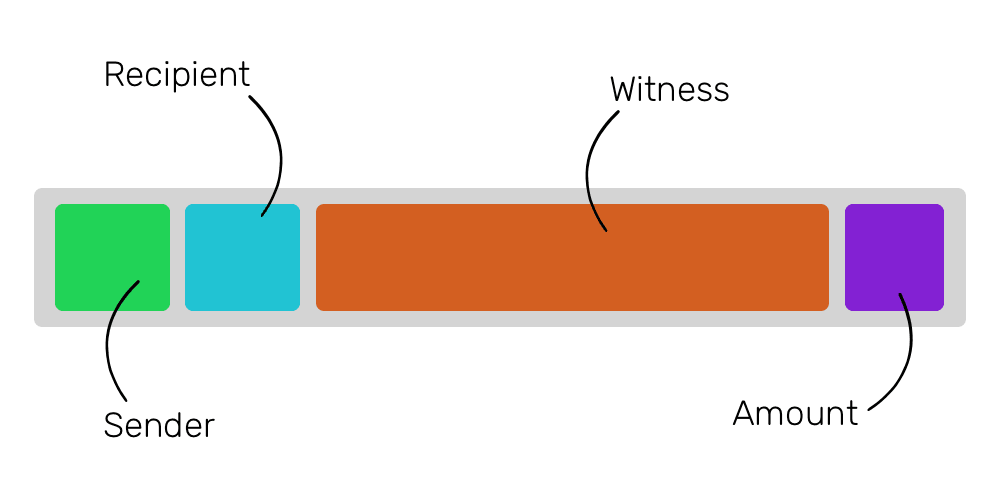If we dig deeper to see what makes up a single transaction, we’ll find that besides the obvious things — like sender, recipients, amount and transaction fee — it also contains something called a ‘Signature’ or ‘Witness’. The Signature verifies that the sender has enough balance to send the said amount of bitcoins in the transactions. This particular data is only used once at the beginning, but it makes up almost 65 percent of the data in a transaction.