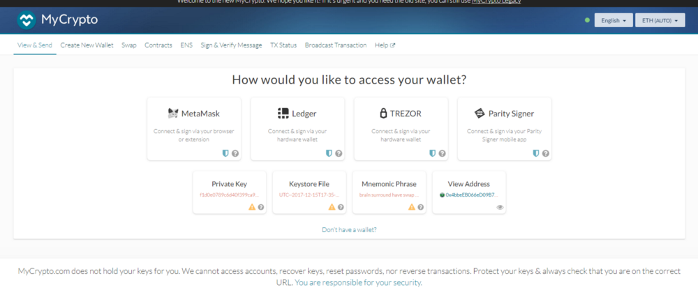 2.mycrypo-跟MyEtherWallet(MEW操作介面幾乎一模一樣,因為他就是MEW的複製版,因為MEW經常發生網站遭釣魚事件,所以改推薦這一個,這個錢包只接受乙太仿及ERC20的代幣。